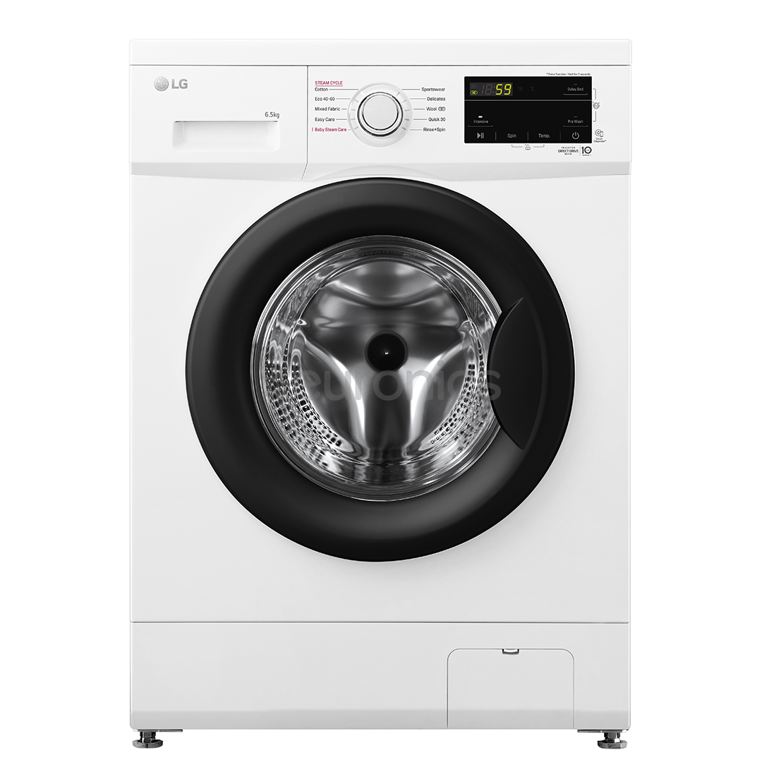 LG narrow washing machine with Inverter Direct Drive™ motor ensures quiet and energy-efficient operation. Smart Diagnosis facilitates maintenance and issue resolution, offering various wash programs and steam washing option. Ideal choice for smaller homes and apartments.