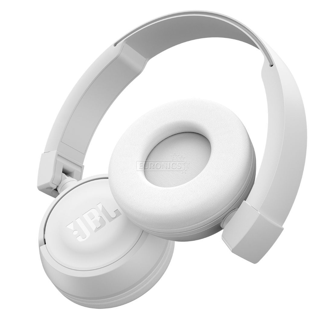 Introducing JBL T450BT on-ear wireless headphones. They’re flat-folding, lightweight, comfortable and compact. Under the hood, a pair of 32mm drivers punch out some serious bass, reproducing the powerful JBL Pure Bass sound you’ve experienced in much bigger venues. Music and call controls/microphone are placed on the earcup. And because your music should go where you go, you’ll get up to 11 hours of uninterrupted audio playback on a single charge.