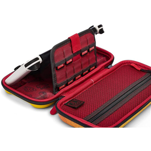 Featuring Mario, Luigi, Toad and Yoshi! Sturdy outer shell with rubberized handle and durable dual zipper pulls. Built-in play stand for Tabletop Mode.
