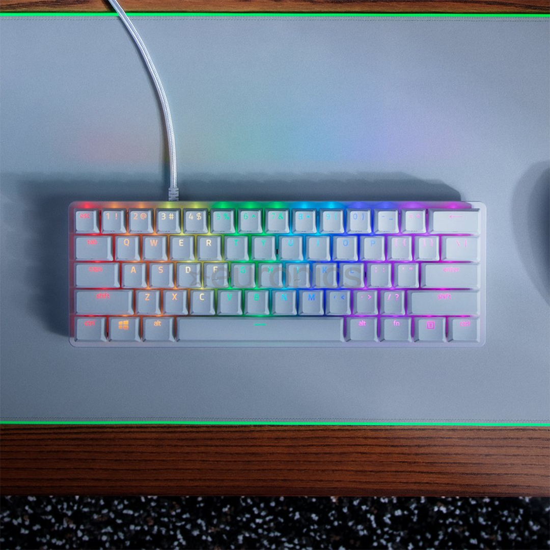Razer Huntsman Mini Mercury Edition keyboard, equipped with Red Switches, is perfect for those who value compactness and efficiency. Its 60% form factor design is ideal for gamers and frequently mobile users, offering high performance and customization options.