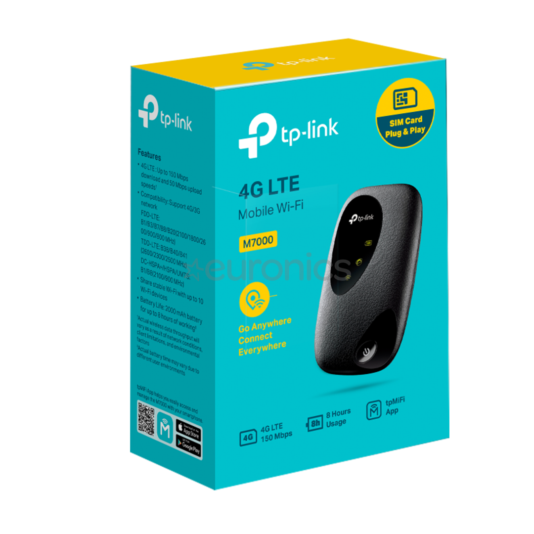 The TP-Link M7000 is a compact and portable 4G LTE mobile WiFi router that enables you to establish a fast and stable internet connection wherever you go. This device supports the simultaneous connection of up to 10 devices and has a battery life of up to 8 hours, providing reliable internet throughout the day.