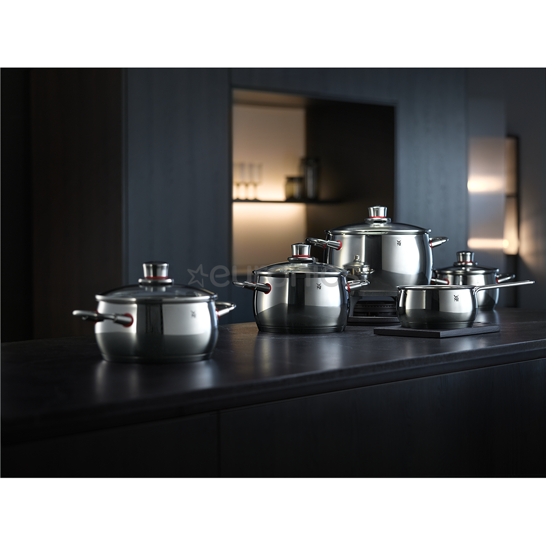 The WMF Quality One Cookware Value Set was designed to bring restaurant-quality results to your home cooking, with handles that are cool to the touch and high-quality materials you can count on day after day. WMF's patented Cool+ technology limits the transfer of heat from pot to handle, for safe cooking with total comfort and ease.*