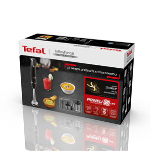 • In the box: Infinyforce hand blender, 1 L chopper-blender attachment, 500 ml compact chopper, whisk attachment, 800 ml beaker