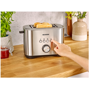 • Large roasting chambers and integrated bread roll attachment: ideal for 2 XXL toast slices, bread slices, rolls or bagels • Integrated bagel function enables one-sided and energy-saving toasting • High-quality housing in full stainless steel design including warm up, defroster and release button • Even browning thanks to integrated bread-slice centring and 7 variably adjustable tanning levels