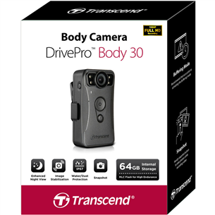 Transcend DrivePro Body 30 is a body-mounted camera designed for public safety professionals, such as police officers and firefighters. The camera is equipped with a highly sensitive image sensor and infrared LEDs, enabling high-quality video recording even in low-light conditions.