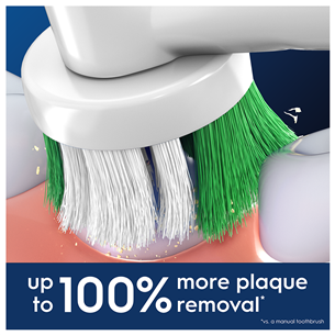 • Eemaldab võrreldes tavalise hambaharjaga raskesti ligipääsetavates kohtades 100% rohkem bakteriaalset kattu ning tagab puhtamad hambad ja tervemad igemed.