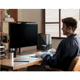 BenQ ScreenBar Pro on nutikas monitorivalgusti, mis pakub optimaalselt reguleeritud valgustust, vähendades silmade väsimust ja parandades tööefektiivsust. Selle kompaktne ja stiilne disain sobib ideaalselt igale töölauale, tagades ühtlase valgustuse ilma ekraani peegeldusteta.