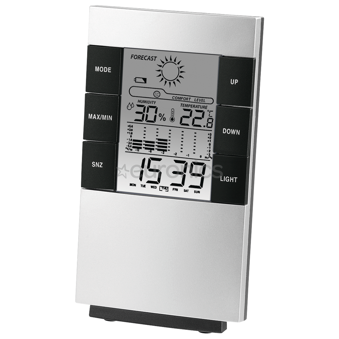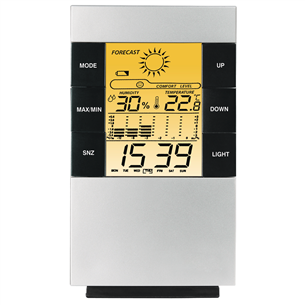 • Digitaalne ekraan näitab temperatuuri, niiskust, kella, nädalapäeva, kuupäeva, ilmateadet
