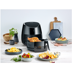 • Mitmekülgseks, tervislikuks ja kiireks toidu valmistamiseks ilma õli või rasvata • XXL-suuruses ca 5 L mahutavusega toidumahuti võimaldab valmistada korraga suuremaid portsjoneid (kuni 1,5 kg friikartuleid) ja ka terve kana • Puutetundlik ekraan 8 automaatprogrammiga tagavad parimad tulemused friikartulite, liha, kana, krevettide, köögiviljade, kala, peekoni ja palju muu valmistamisel • Mälufunktsioon kõigi automaatprogrammide ja individuaalsete sätete jaoks • Seadistatav temperatuur ja aeg • Keraamilise kattega toidukorv ja hoidik on kriimustuskindlad, nakkumatu pinnaga ja lihtsasti puhastatavad • Suur LED-ekraan • Reguleeritav temperatuur 80-200 °C • 60-minutiline taimer helisignaaliga