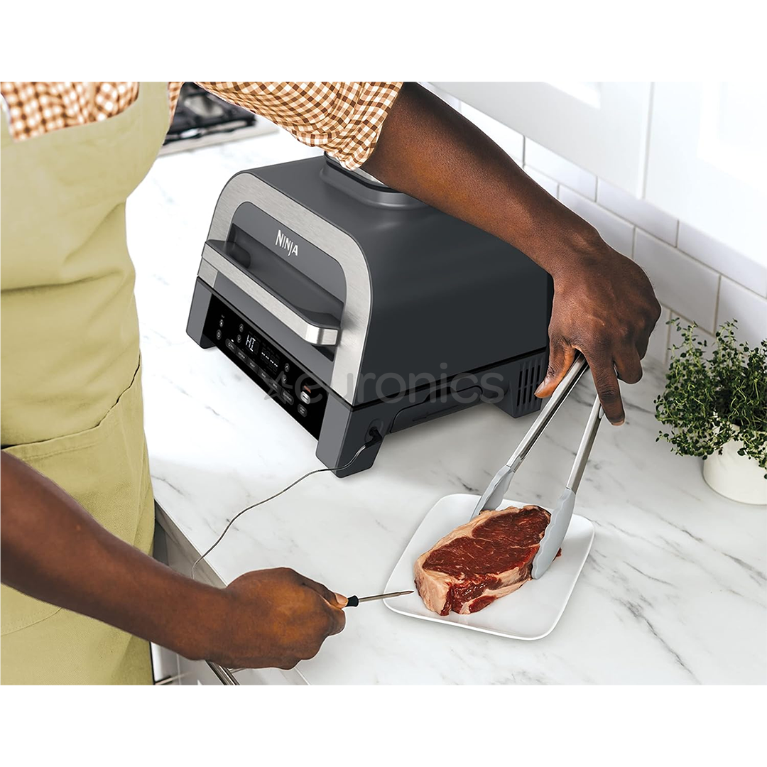 Vali oma eelistatud küpsetusaste ja lase seadmel teha töö ära – grill lülitub automaatselt välja, et vältida üleküpsetamist ja lasta lihal ning kalal puhata. Sisseehitatud digitaalne küpsetusandur jälgib temperatuuri ning annab märku, kui toit on saavutanud ohutu ja täpse küpsusastme. Seda saab kasutada ka toidu ülessoojendamiseks. Retseptiraamatus olevad küpsetustabelid aitavad valmistada steike ja fileesid just Sulle sobival moel.