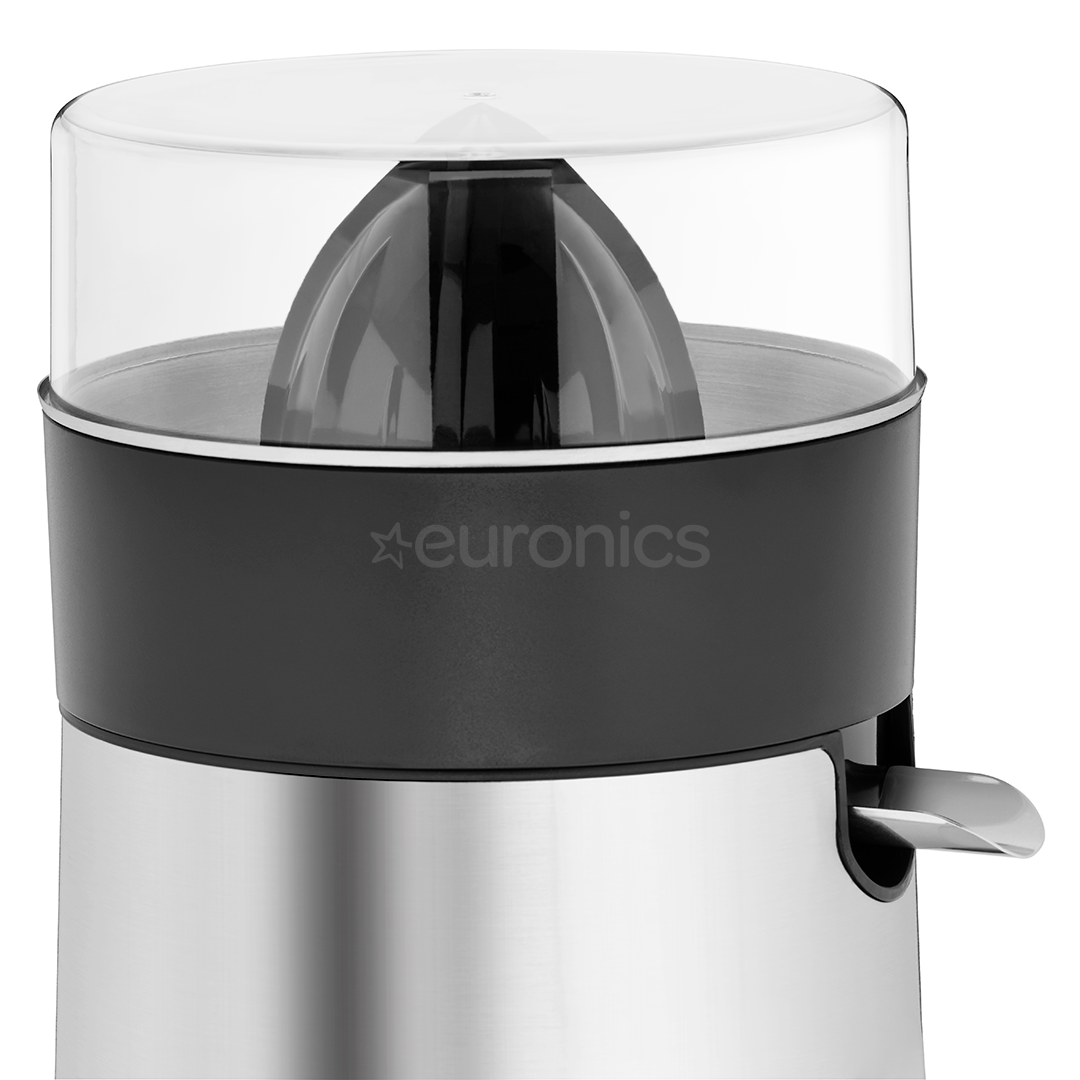 • Kaks koonust täiuslikuks mahlapressimiseks erineva suurusega puuviljadest • Tilgalukuga, et tööpinnad puhtana hoida • Eemaldatav sõel ja presskoonused: Valmistatud kvaliteetsest, nõudepesumasinas pestavast roostevabast terasest • Elektriline tsitrusepress automaatse käivitamise/peatamise funktsiooniga lihtsaks mahlapressimiseks • Mugav maahlapressimine otse klaasi • Läbipaistev kaas täiuslikuks hoiustamiseks. • Vastupidav ja stiilne Cromargan® roostevaba teras 18/10 korpus