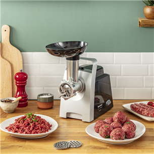 • KOMPAKTNE: sellel ruumisäästlikul elektrilisel hakklihamasinal on käepide, mis hõlbustab hoiustamist ja integreerub sujuvalt igasse kööki