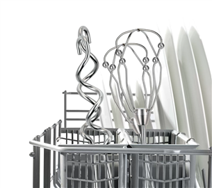 Visplite ja tainakonksude vahetamine on väga mugav – väljutamisnupp vabastab tööriistad vaid nupuvajutusega. Saad nii töötades lisatarvikuid vahetada või tarvikud puhastamiseks nõudepesumasinasse panna.