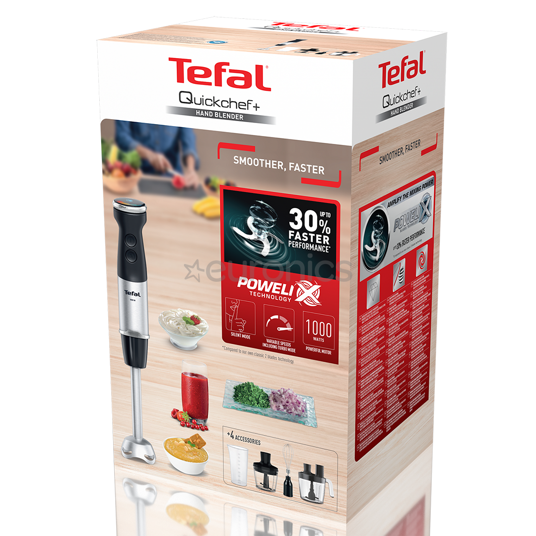 Tefal Quickchef+ saumikseriga naudid optimaalset võimsust ilma igasuguse vaevata. Ainulaadne Powelix terade tehnoloogia ühendatud võimsa 1000 W mootoriga tagab kõrgetasemelise segamistulemuse, mis on kuni 30% kiirem* ja annab uskumatult ühtlased tulemused isegi kõige tugevamate koostisosadega. Vaikne režiim ja terve rida mugavaid omadusi lisavad komplektile veelgi väärtust.