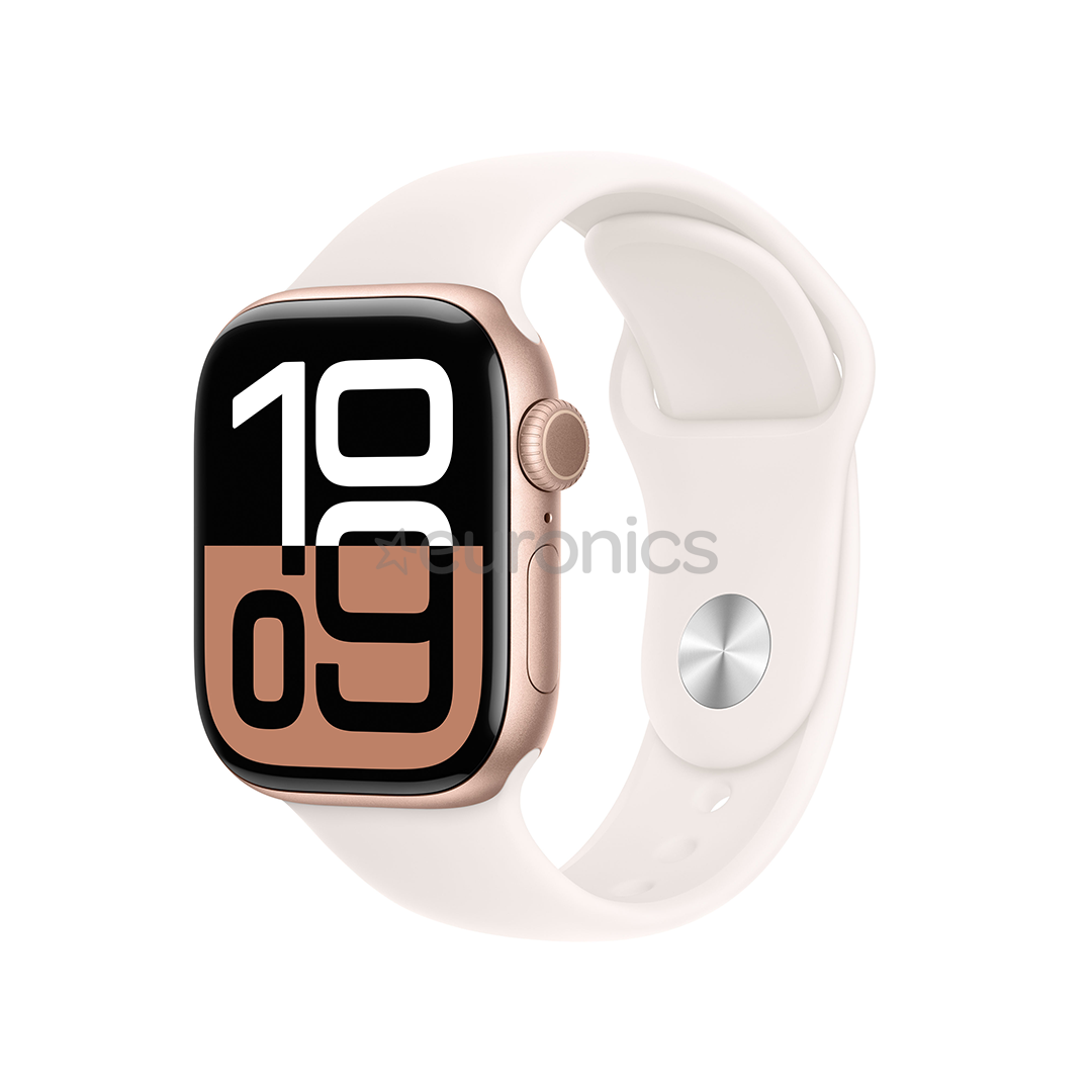 Apple Watch Series 10 – это самые тонкие смарт-часы Apple, оснащенные самым большим и продвинутым OLED-дисплеем. Чип S10 SiP со встроенным четырехъядерным Neural Engine обеспечивает умные функции, такие как Smart Stack, инструменты для защиты здоровья (например, обнаружение падения) и новый циферблат с фотографиями. Часы пыле- и водонепроницаемы, а также поддерживают быструю зарядку – до 80% заряда аккумулятора всего за 30 минут.